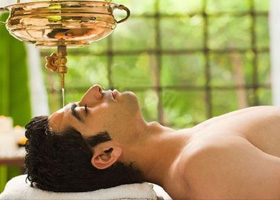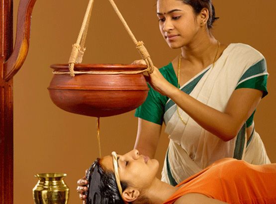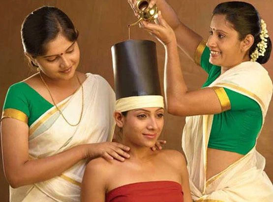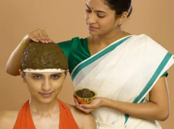 The prescribed medicated oil, lukewarm, is poured on the head through a specially made cap. It is effective in eye, nose and ear diseases, chronic headaches, facial paralysis, spondilytis, insomnia etc.