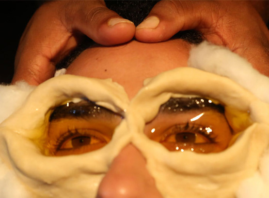 This is meant mainly for eye diseases. A blockage is built with black gram paste around the eye from the bridge of the nose to the tip of the brows. The eye should be kept closed and the medicine, warmed by water bath is poured up to the level to immerse till the eye lashes. It is found useful in cataract, conjunctivitis, falling of eyelashes and naso lachrymal blocks.