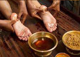 This is a process by which the whole body or specific part is made to sweat by the application of certain medicinal puddings made of Navara rice etc. tied up as boluses in a clean cotton cloth. This is highly effective in polio,cerebral palsy, muscular atrophy and hypertrophy.